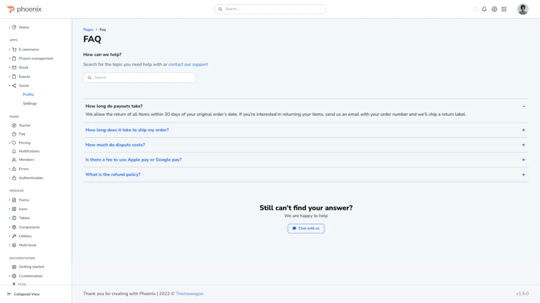 Many of our customers are using Phoenix with Laravel. Using Phoenix is like using Bootstrap with Laravel, just with some extra features.For a starter, you need to take all the CSS and JS files from Phoenix's "public/assets" folder to your project and link them to your view files. You can find all the required scripts and styles on the source of the starter page. It is also possible to compile the SCSS and use the ES6 JavaScript partial files with Laravel using Phoenix's built-in gulp based workflow.