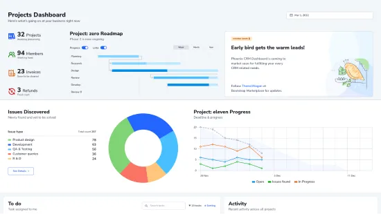 This is our newest admin dashboard. We'll keep updating it according to users' needs. We keep a changelog with every release, so you'll be able to update the theme from one version to another with that changelog.